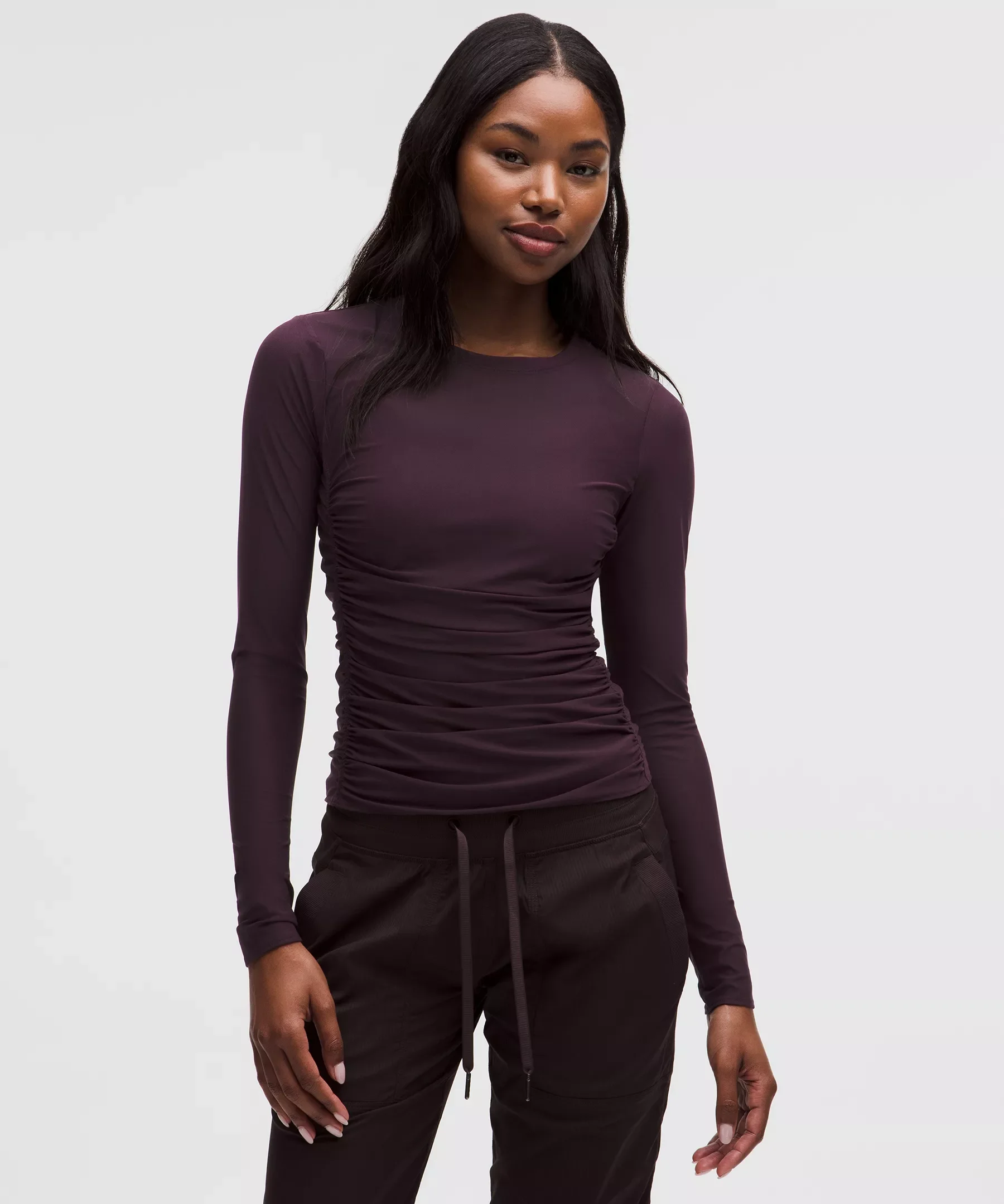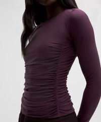 Mesh Ruched Long-Sleeve Shirt