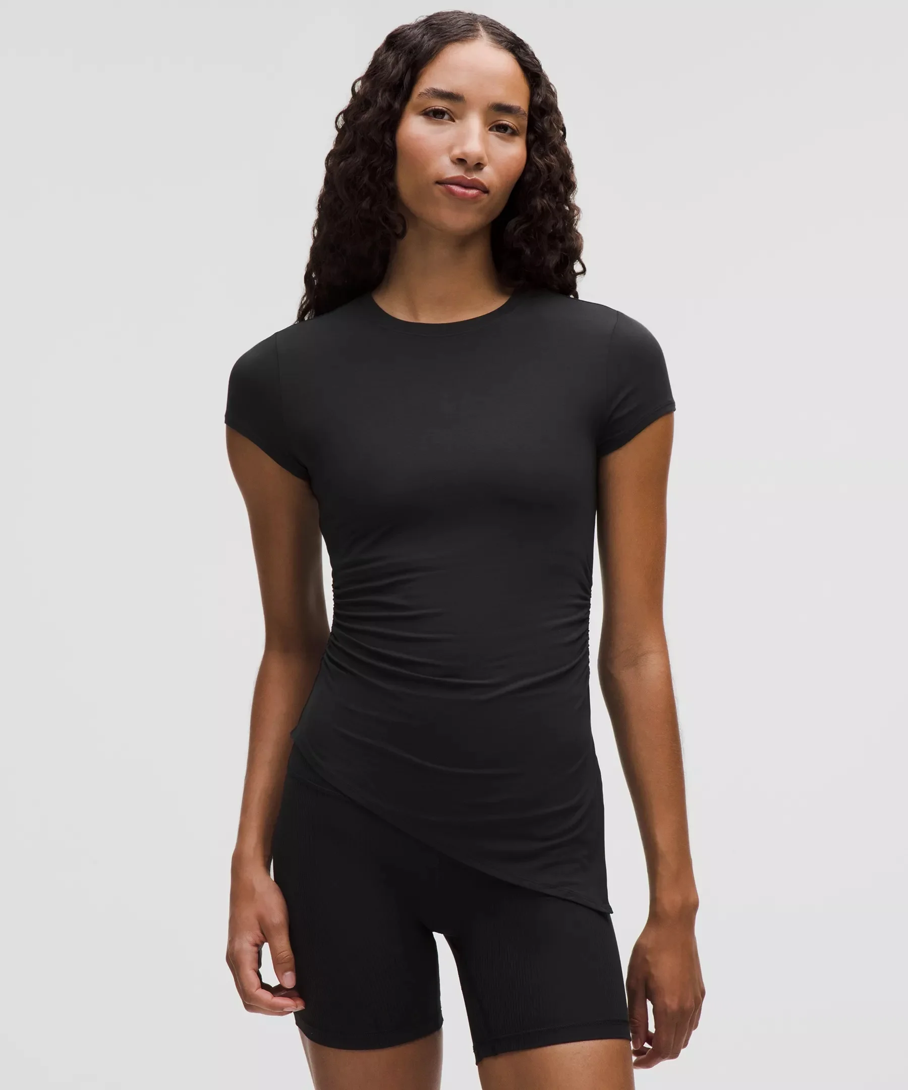 Designed for Casual Soft, Silk-Blend Modal Fabric - Silky-soft - Four-way stretch - Sweat-wicking - Quick-drying - Naturally breathable - Fabric is derived from wood-based materials from well-managed forests Slim Fit, Waist Length - Skims your body - Not too short, not too long, just right around the waistband - Asymmetrical hem has a slit on the longer side Material and care Materials Body: 86% Lenzing Modal8% Mulberry Silk6% Elastane Care Machine Wash Cold - Do Not Bleach - Tumble Dry Low - Do Not Iron - Do Not Dry Clean - Wash With Like Colors