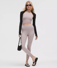 Designed for Yoga Feels Buttery-Soft and Weightless, Nulu™ Fabric - So buttery soft, it feels weightless - Four-way stretch - Sweat-wicking - Breathable - Added Lycra® fibre for stretch and shape retention Light Support, B/C Cups - Intended to provide light support for B/C cups - Tight fit contours your body - Cropped length is cut above the waist—perfect with high-rise pants - Intended for low-impact activities Product Features - Built-in shelf bra for added support and coverage - Pockets for optional, removable cups Material and care Materials Contrast: 64% Nylon36% Elastane - Bra Lining: 81% Nylon19% Lycra Elastane - Body: 81% Nylon19% Lycra Elastane - Middle Layer: 89% Recycled Nylon11% Elastane Care Machine Wash Cold - Do Not Bleach - Tumble Dry Low - Do Not Iron - Do Not Dry Clean - Wash With Like Colors