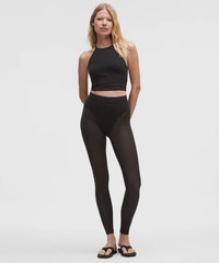 Designed for Yoga Feels Buttery-Soft and Weightless, Nulu™ Fabric - Brief-shaped top made from lightweight, buttery-soft Nulu™ fabric - Four-way stretch mesh fabric legs are quick-drying and abrasion-resistant High Rise, 28" Length - Full length intended to sit at ankle Product Features - Brief cut is high in the front, sides, and back - Wear with care: Scrunch up legs, gently feed feet through hem openings, and slowly roll fabric up your legs Material and care Materials Lining: 90% Recycled Polyester10% Lycra Elastane - Mesh: 73% Polyamide27% Lycra Elastane - Body: 81% Nylon19% Lycra Elastane Care Machine Wash Cold - Do Not Bleach - Tumble Dry Low - Do Not Iron - Do Not Dry Clean - Wash With Like Colors