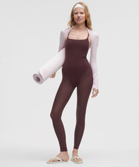 Designed for Yoga Feels Buttery-Soft and Weightless, Nulu™ Fabric - So buttery soft, it feels weightless - Four-way stretch - Sweat-wicking - Breathable - Added Lycra® fibre for stretch and shape retention - Mesh fabric legs and back panel Tight Fit, 28" Length - Tight fit contours your body - 28" length - Full length intended to sit at ankle Product Features - Adjustable strap - Front lining has pockets for optional, removable cups - Bikini cut is high in the back, front, and sides - Wear with care: Scrunch up legs, gently feed feet through hem openings, and slowly roll fabric up your legs Material and care Materials Body: 81% Nylon19% Lycra Elastane - Mesh: 73% Polyamide27% Lycra Elastane - Lining: Face: 65% Polyamide, 35% Lycra Elastane - Middle Layer: 89% Recycled Nylon11% Elastane Care Machine Wash Cold - Do Not Bleach - Tumble Dry Low - Do Not Iron - Do Not Dry Clean - Wash With Like Colors