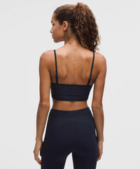 Designed for Yoga Feels Buttery-Soft and Weightless, Nulu™ Fabric - So buttery soft, it feels weightless - Four-way stretch - Sweat-wicking - Breathable - Added Lycra® fibre for stretch and shape retention - Soft lace fabric back is four-way stretch, quick-drying, and naturally breathable - Lined with four-way stretch, sweat-wicking, and quick-drying fabric that's smooth next to skin - Be gentle and treat with care. Please refer to the material and care section below for full fibre content information and wash instructions Light Support, B/C Cups - Intended for low-impact activities Product Features - Pockets for optional, removable cups - Adjustable straps Material and care Materials Contrast: 55% Nylon45% Elastane - Body: 81% Nylon19% Lycra Elastane - Lining: 83% Polyester (recycled)17% Elastane Care Machine Wash Cold - Do Not Bleach - Tumble Dry Low - Do Not Iron - Do Not Dry Clean - Wash With Like Colors