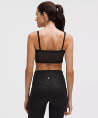 Designed for Yoga Feels Buttery-Soft and Weightless, Nulu™ Fabric - So buttery soft, it feels weightless - Four-way stretch - Sweat-wicking - Breathable - Added Lycra® fibre for stretch and shape retention - Soft lace fabric back is four-way stretch, quick-drying, and naturally breathable - Lined with four-way stretch, sweat-wicking, and quick-drying fabric that's smooth next to skin - Be gentle and treat with care. Please refer to the material and care section below for full fibre content information and wash instructions Light Support, B/C Cups - Intended for low-impact activities Product Features - Pockets for optional, removable cups - Adjustable straps Material and care Materials Contrast: 55% Nylon45% Elastane - Body: 81% Nylon19% Lycra Elastane - Lining: 83% Polyester (recycled)17% Elastane Care Machine Wash Cold - Do Not Bleach - Tumble Dry Low - Do Not Iron - Do Not Dry Clean - Wash With Like Colors