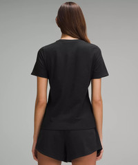 Soft, Organic Cotton Jersey Fabric Soft Four-way stretch Naturally breathable Added Lycra® fibre for stretch and shape retention Soft and breathable organic cotton is farmed without harmful chemicals to help support a healthier planet Classic Fit, Hip Length An easy fit that skims the body through the chest and hips Straight hem hits below the waistband for moderate, everyday coverage XS = lululemon size 4, S = lululemon size 6, M = lululemon size 8, L = lululemon size 10, XL = lululemon size 12-14 Material and care Materials Body: 93% Organic cotton7% Lycra® elastane Care Wash with like colours Machine wash cold Do not bleach Tumble dry low Do not iron Do not dry clean Imported