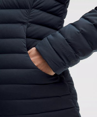 Water-Resistant, DiamondStretch™ Fabric Water-resistant Windproof Two-way stretch 700-fill-power goose down provides lightweight warmth ThermoChannel™ construction evenly distributes down insulation to help eliminate cold spots and reduce bulk 100% of our down is certified to the Responsible Down Standard (RDS) by Control Union (No. 847515) Slim Fit, Hip Length Slim fit skims your body Product Features Hand pockets with hidden card sleeve Removable hood Removable stuff sack for easy packing Material and care Materials Pouch: 91% Nylon9% Elastane Palm Side Pocket: 91% Nylon9% Elastane Filling: 85% Grey Goose Down15% Grey Goose Feather Body: 85% Nylon15% Elastane Knuckle Side Pocket: 100% Polyester Hood: 85% Nylon15% Elastane Trim Filling: 100% Recycled Polyester Care Contains Non-Textile Parts of Animal Origin, Tumble Dry Low With Clean Tennis Balls. Wash With Like Colors Machine wash cold Do not bleach Do not iron Do not dry clean