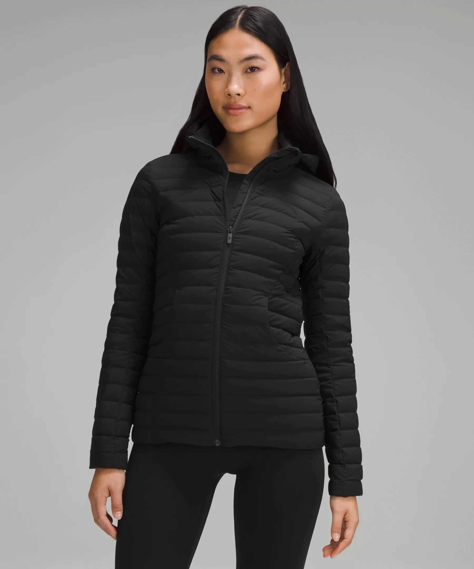 Water-Resistant, DiamondStretch™ Fabric Water-resistant Windproof Two-way stretch 700-fill-power goose down provides lightweight warmth ThermoChannel™ construction evenly distributes down insulation to help eliminate cold spots and reduce bulk 100% of our down is certified to the Responsible Down Standard (RDS) by Control Union (No. 847515) Slim Fit, Bum-Covering Length Slim fit skims your body Product Features Hand pockets with hidden phone sleeve Removable hood Removable stuff sack for easy packing Material and care Materials Pouch: 100% Polyurethane Knuckle side pocket: 100% Polyester Trim filling: 100% Recycled polyester Palm side pocket: 100% Polyurethane Filling: 85% Grey goose down15% Grey Goose Feathers Body: 85% Nylon15% Elastane Hood: 85% Nylon15% Elastane Care Wash with like colours Machine wash cold Do not bleach Tumble dry low Do not iron Do not dry clean Imported