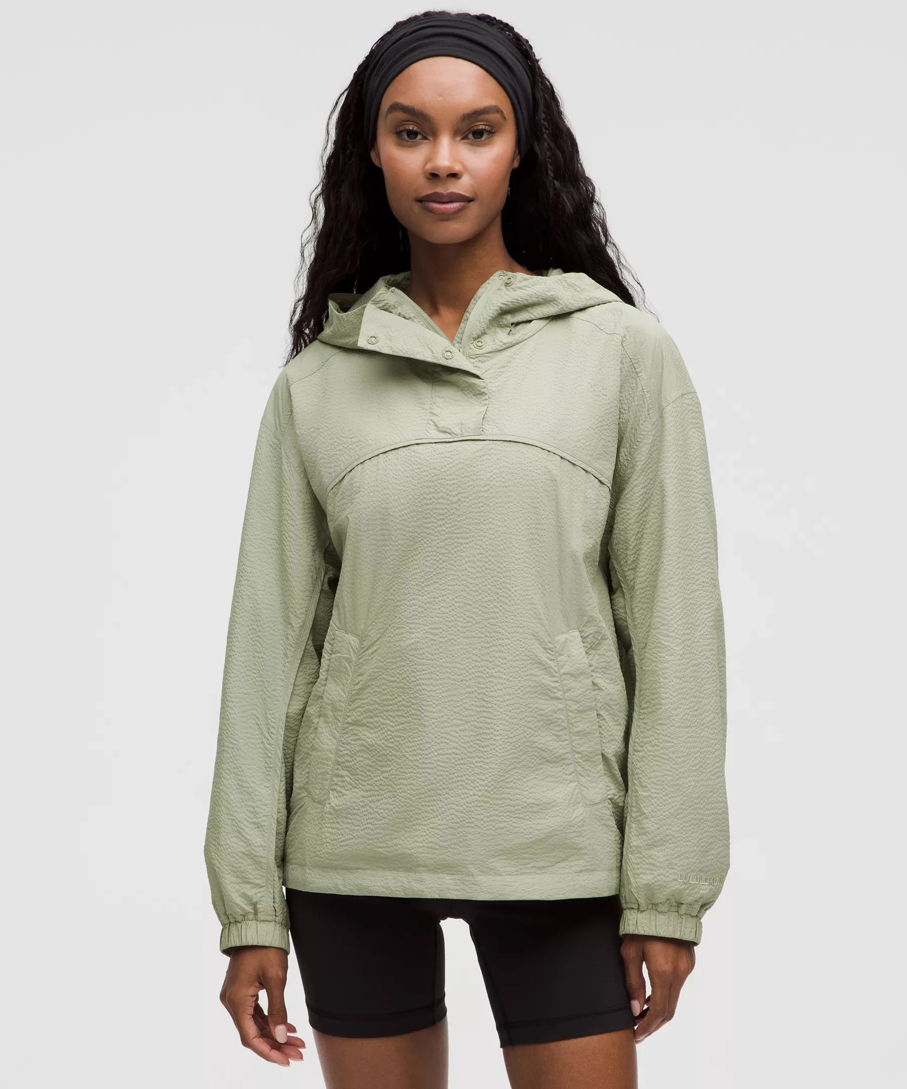 Designed for Casual Lightly Textured Fabric - Lightly textured - Water-resistant - Windproof - UV protective - UPF 40+ provides very good UV protection to only covered areas. This item's protection may be reduced with use, or if it gets stretched or wet. Sun exposure causes skin damage Oversized Fit, Hip Length - Oversized fit is purposefully large with exaggerated proportions. Size down if you prefer a slimmer fit Product Features - Zippered kangaroo pocket - Jacket packs into hand pocket to create an easy-carry pouch - Cinchable hem Material and care Materials Body: 100% Nylon - Lining: 100% Recycled Polyester Care Machine Wash Cold - Do Not Bleach - Tumble Dry Low - Do Not Iron - Do Not Dry Clean - Europe - UV Protection - Wash With Like Colors