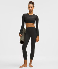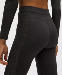 Designed for Yoga Feels Buttery-Soft and Weightless, Nulu™ Fabric - So buttery soft, it feels weightless - Four-way stretch - Sweat-wicking - Breathable - Added Lycra® fibre for stretch and shape retention - Sleek lace mesh is four-way stretch, quick-drying, and naturally breathable - Sheer panels on legs are lined at the hips for coverage - Lace overlay at back yoke High Rise, 25" Length - Intended to sit above ankle Material and care Materials Gusset: 81% Nylon19% Lycra Elastane - Body: 81% Nylon19% Lycra Elastane - Lace: 55% Nylon45% Elastane Care Machine Wash Cold - Do Not Bleach - Tumble Dry Low - Do Not Iron - Do Not Dry Clean - Turn Garment Inside Out - Wash With Like Colors