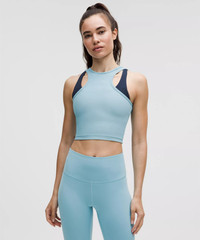 Designed for Training Sweat-Wicking, Ribbed Luxtreme™ Fabric - Sweat-wicking - Ribbed texture - Four-way stretch - Quick-drying - Added Lycra® fibre for stretch and shape retention Tight Fit, Cropped Length - Contours your body - Cut above the waist—perfect with high-rise pants Product Features - Reversible—flip it around front to back to change up the look - Shelfless tank lets you choose the bra that works for you Material and care Materials Body: 72% Nylon28% Lycra Elastane Care Machine Wash Cold - Do Not Bleach - Tumble Dry Low - Do Not Iron - Do Not Dry Clean - Wash With Like Colors