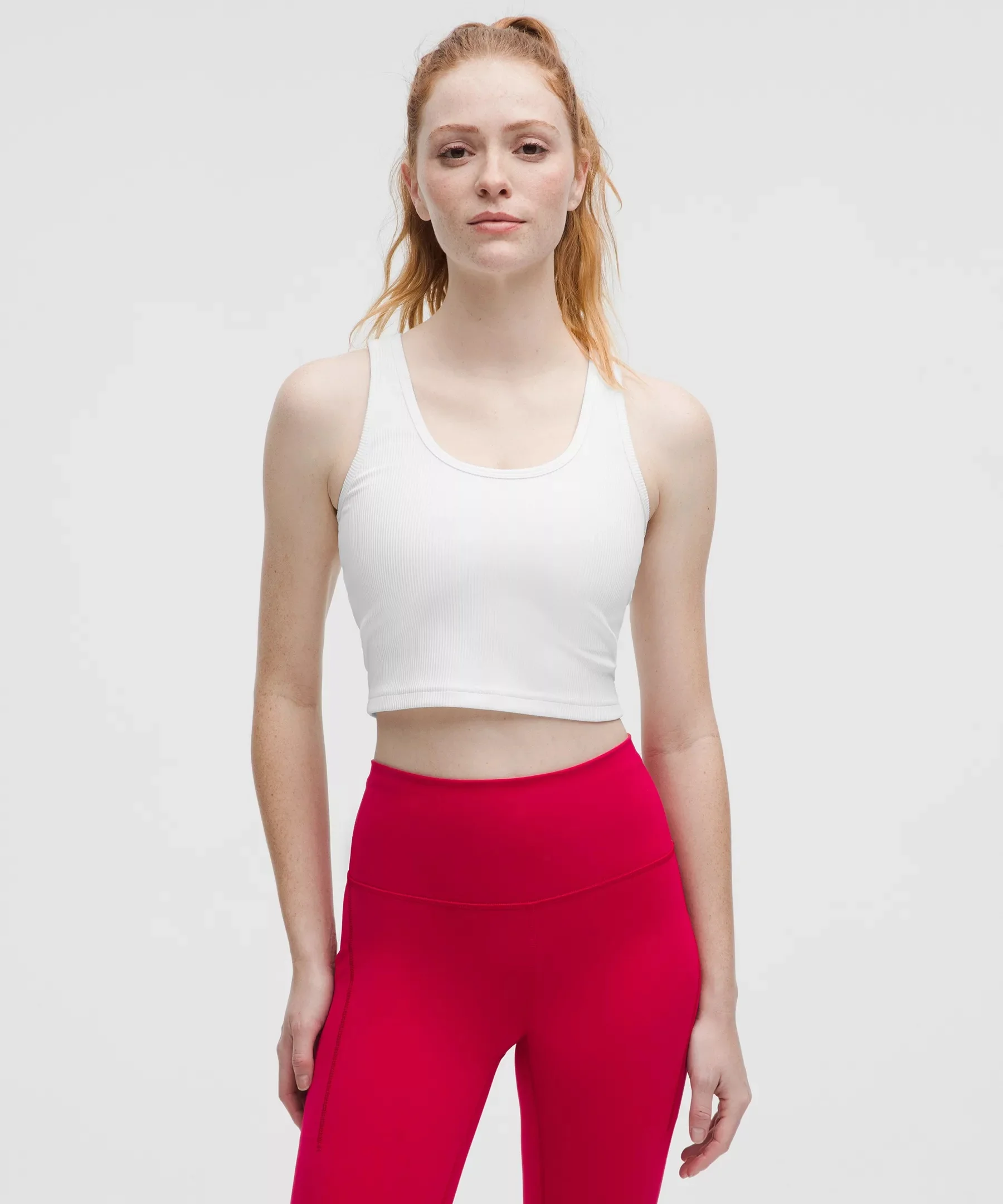 Designed for Training Sweat-Wicking, Ribbed Luxtreme™ Fabric - Sweat-wicking - Ribbed texture - Four-way stretch - Quick-drying - Added Lycra® fibre for stretch and shape retention Tight Fit, Cropped Length - Contours your body - Cut above the waist—perfect with high-rise pants Product Features - Reversible—flip it around front to back to change up the look - Shelfless tank lets you choose the bra that works for you Material and care Materials Body: 72% Nylon28% Lycra Elastane Care Machine Wash Cold - Do Not Bleach - Tumble Dry Low - Do Not Iron - Do Not Dry Clean - Wash With Like Colors