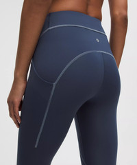 Designed for Training Abrasion-Resistant Fabric - Abrasion-resistant - Sweat-wicking - Quick-drying - Four-way stretch - Added Lycra® fibre for stretch and shape retention High Rise, 25" Length - Waistband is high rise in the front and super-high rise in the back for extra coverage - Intended to sit above ankle Product Features - Side drop-in pockets - Continuous drawcord is easy to cinch and won't get lost in the wash Material and care Materials Pockets: 89% Nylon11% Elastane - Body: 72% Nylon28% Lycra Elastane Care Machine Wash Cold - Do Not Bleach - Line Dry - Do Not Iron - Do Not Dry Clean - Remove Promptly After Wash - Wash Separately