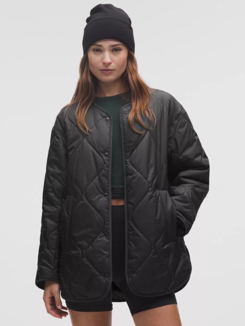 Designed for Casual Water-Repellent Fabric - Water-repellent - Windproof - Buttery peached feel - PrimaLoft® insulation is warm, even when wet - This product contains recycled polyester made from repurposed plastic waste Relaxed Fit, Bum-Covering Length - Relaxed fit feels roomy and can be worn over larger layers. Size down if you prefer a slimmer fit Product Features - Zippered hand pockets with hidden phone sleeve - Snap-button front - Mid warmth is designed with zoned RDS Down or PrimaLoft® insulation to regulate body temperature Material and care Materials Knuckle Side Pocket: 100% Recycled Polyester - Body: 100% Polyester - Filling: 100% Recycled Polyester - Lining: 100% Recycled Polyester Care Machine Wash Cold - Do Not Bleach - Tumble Dry Low - Do Not Iron - Do Not Dry Clean - Wash With Like Colors