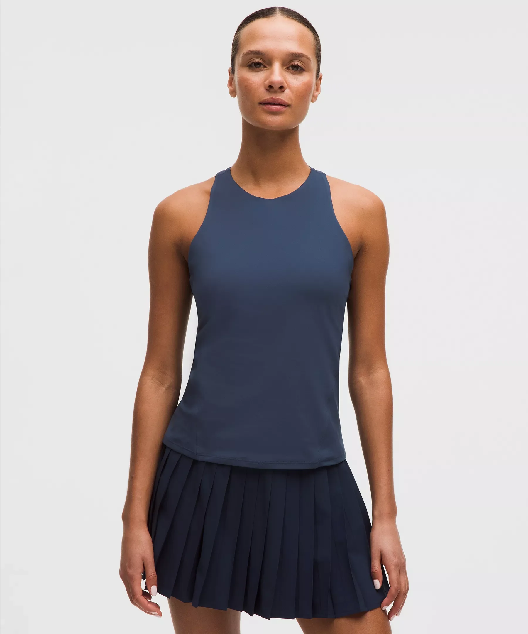 Designed for Tennis Sweat-Wicking Fabric - Sweat-wicking - Four-way stretch - Quick-drying - Lightweight - 100% of the polyester in this product is recycled (excluding trims) B/C Cups - Intended to provide support for B/C cups - Tight fit contours your body - Hip length sits below the waistband for moderate, everyday coverage Product Features - Built-in shelf bra for added support and coverage Material and care Materials Body: 84% Polyester (recycled)16% Elastane - Middle Layer: 90% Polyester (recycled)10% Lycra Elastane - Lining: 83% Polyester (recycled)17% Elastane Care Machine Wash Cold - Do Not Bleach - Tumble Dry Low - Do Not Iron - Do Not Dry Clean - Wash With Like Colors