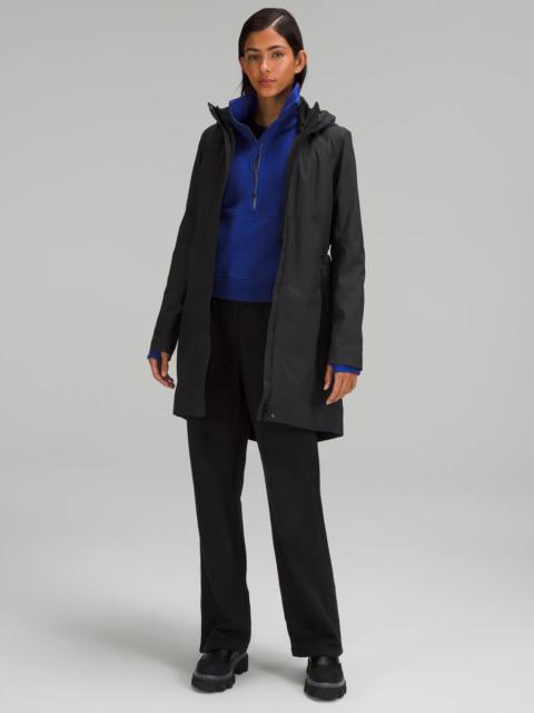 Waterproof, Glyde™ Fabric Waterproof Seam-sealed to keep you dry Breathable PrimaLoft® insulation at your core is warm, even when wet Classic Fit, Thigh Length Classic fit falls away from your body with room for layering Product Features Zippered exterior pockets with a hidden phone sleeve Interior pockets hold the essentials Hood cinches at the front and back Cinchable drawcord at waist Flip up the cuffs to reveal reflective details Material and care Materials Filling: 75% Recycled Polyester25% Polyester Lining: 100% Recycled Polyester Pocket Lining: 100% Polyester Body: Face: 100% PolyesterMiddle: 100% PolyurethaneBack: 100% Polyester Care Wash with like colours Machine wash cold Do not bleach Tumble dry low Do not iron Do not dry clean