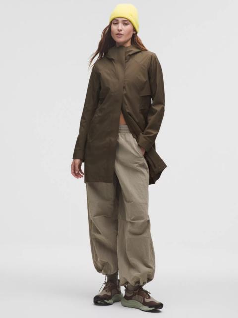 Designed for Casual Waterproof, Glyde™ Fabric - Waterproof - Windproof - Breathable - Seam-sealed to keep you dry Classic Fit, Thigh Length - Classic fit falls away from your body with room for layering Product Features - Back vent strategically placed to provide airflow - Cinchable waist with a slim slide-and-lock toggle - Cinchable hood - Zippered hand pockets with hidden phone sleeve - Two zippered chest pockets on the inside - Flip up the cuffs to reveal reflective details - Two-way zipper Material and care Materials Lining: 100% Recycled Polyester - Pocket Lining: 100% Recycled Polyester - Body: Face: 100% Recycled PolyesterMiddle: 100% PolyurethaneBack: 100% Polyester - Mesh: 90% Recycled Polyester10% Lycra Elastane Care Machine Wash Cold - Do Not Bleach - Tumble Dry Low - Do Not Iron - Do Not Dry Clean - Wash With Like Colors
