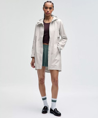 Waterproof, Glyde™ Fabric Waterproof Seam-sealed to keep you dry Breathable Windproof Classic Fit, Thigh Length Classic fit falls away from your body with room for layering Product Features Back vent strategically placed to provide airflow Cinchable waist with a slim slide-and-lock toggle Cinchable hood Zippered pockets with a hidden phone sleeve Interior pockets hold the essentials Flip up the cuffs to reveal reflective details Two-way zipper Material and care Materials Mesh: 89% Nylon11% Elastane Pocket lining: 100% Polyester Lining: 100% Polyester Body: 100% Polyester Care Wash with like colours Machine wash cold Do not bleach Tumble dry low Do not iron Do not dry clean Imported