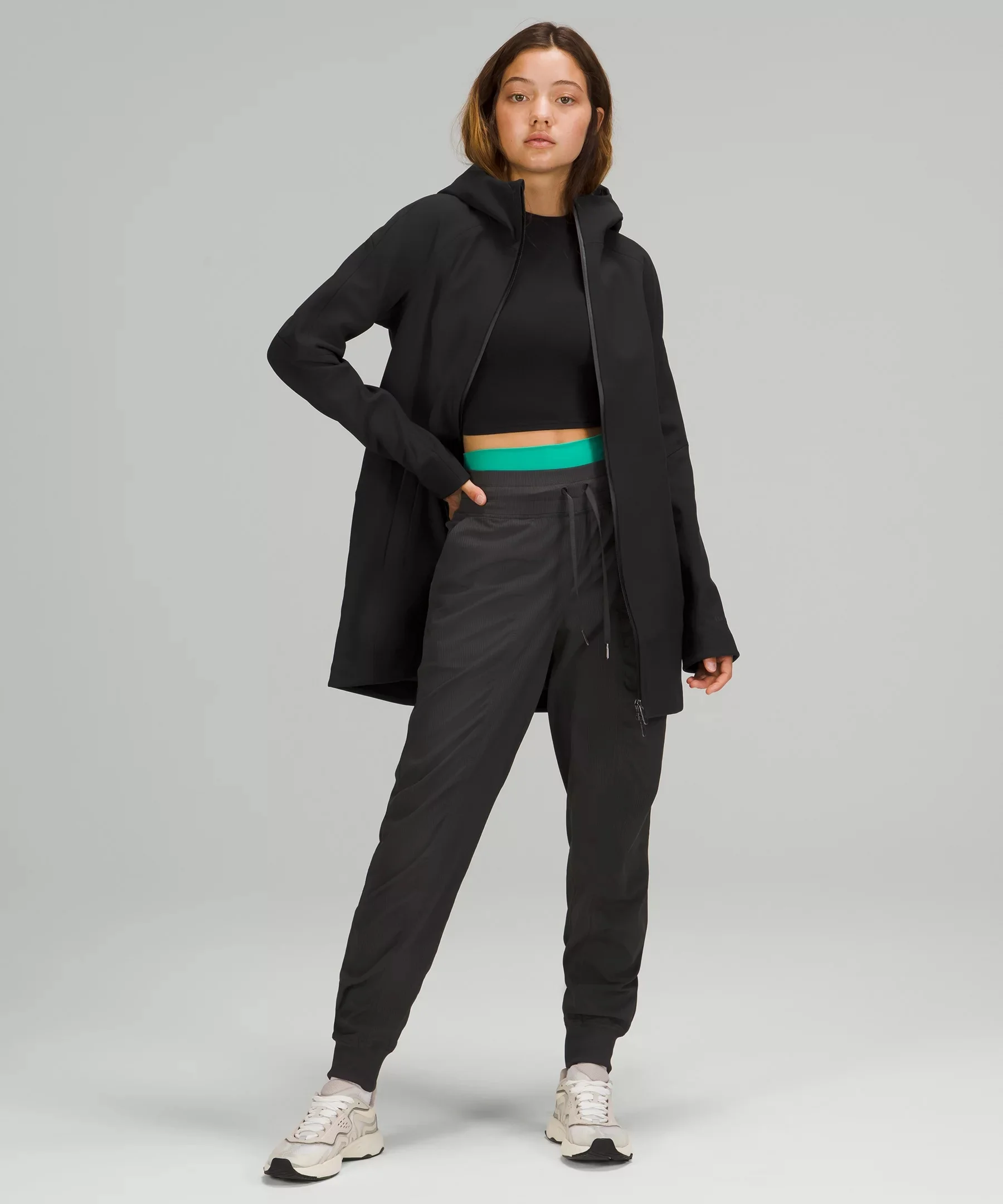 Waterproof, RepelShell™ Fabric Waterproof Windproof Breathable Four-way stretch Super-soft fleece backing Classic Fit, Thigh Length Classic fit falls away from your body with room for layering Product Features Cinchable drawcord at waist Zippered pockets with a hidden phone sleeve Material and care Materials Pocket lining: 100% Polyester Body: 95% Polyester5% Elastane Care Wash with like colours Machine wash cold Do not bleach Tumble dry low Do not iron Do not dry clean Imported