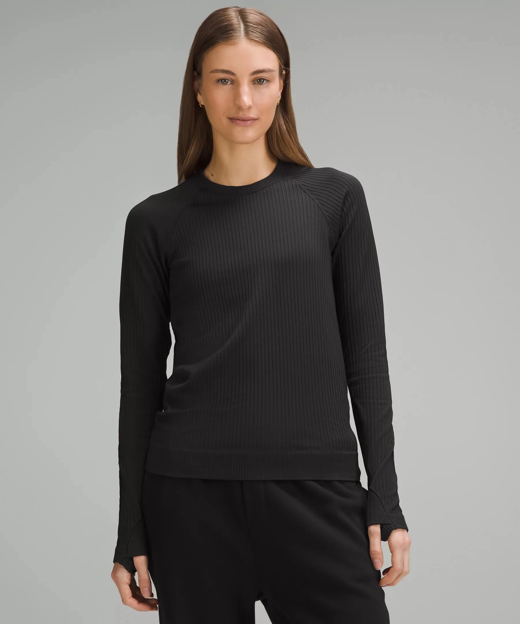 Skip-the-Chafe, Seamless Construction Minimal seams to reduce chafe Sweat-wicking Four-way stretch Cozy and warm Slim Fit, Hip Length Skims your body Sits below the waistband for moderate, everyday coverage Product Features Thumbholes keep your sleeves in place This fabric was treated with No-Stink Zinc™ to inhibit the growth of odour-causing bacteria Material and care Materials All: 57% Nylon35% Recycled polyester8% Elastane Care Wash with like colours Machine wash cold Do not bleach Tumble dry low Do not iron Do not dry clean Imported