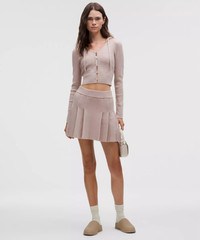 Designed for Casual Soft, Ribbed Merino Wool-Blend Fabric - Soft against skin - Naturally thermoregulating - Linen neps—small clusters of fibres in the yarn—give a speckled look - Be gentle and treat with care. Please refer to the material and care section below for full fibre content information and wash instructions - To keep this skirt looking its best, hand wash and lay flat to dry Mid Rise, Above the Knee Length - Fitted at the hips and kicks out where the box pleats open - Falls to just above the centre of the kneecap Material and care Materials Pocket Lining: 100% Recycled Polyester - Body: 50% Elastomultiester50% Recycled Polyester - Short: 83% Recycled Polyester17% Elastane Care Hand Wash Cold - Do Not Bleach - Lay Flat To Dry - Do Not Iron - Do Not Dry Clean - Handle With Care - Handwash Only - Reshape While Wet To Original Size - Turn Garment Inside Out