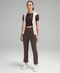 Peach-Fuzz Soft, Ribbed Softstreme™ Fabric Peach-fuzz soft, ribbed texture Quick-drying Machine washable. Water drops can easily mark this fabric—a simple wash will remove them 100% of the polyester in this product is recycled (excluding trims) High Rise, Cropped Length Intended to sit above ankle Tight fit Product Features Zippers at the hem change the shape from straight leg to flared Pull-on waistband Back drop-in pocket Material and care Materials Pocket lining: 82% Nylon18% Lycra® elastane Body: 67% Recycled polyester28% Lenzing® modal5% Elastane Care Wash separately Machine wash cold gentle Do not bleach Lay flat to dry Do not iron Do not dry clean Imported