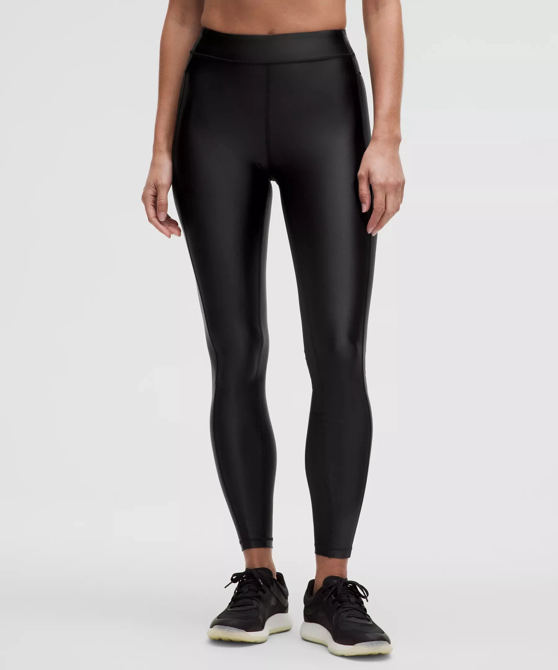 Smooth, Satin Shine Fabric Smooth with a satin-like shine Four-way stretch Sweat-wicking Quick-drying Added Lycra® fibre for stretch and shape retention High Rise, 28" Length Full length intended to sit at ankle Product Features Back drop-in pocket Continuous drawcord is easy to cinch, won’t get lost in the wash, and helps keep your leggings in place so you don’t have to pull them up mid-run Material and care Materials Gusset: 90% Recycled Polyester10% Lycra Elastane Waistband Lining: 90% Recycled Polyester10% Lycra Elastane Pocket Lining: 90% Recycled Polyester10% Lycra Elastane Body: Face: 68% Polyamide, 32% Lycra Elastane Inner Waistband: 68% Nylon32% Elastane Care Wash with like colours Machine wash cold Do not bleach Tumble dry low Do not iron Do not dry clean Imported