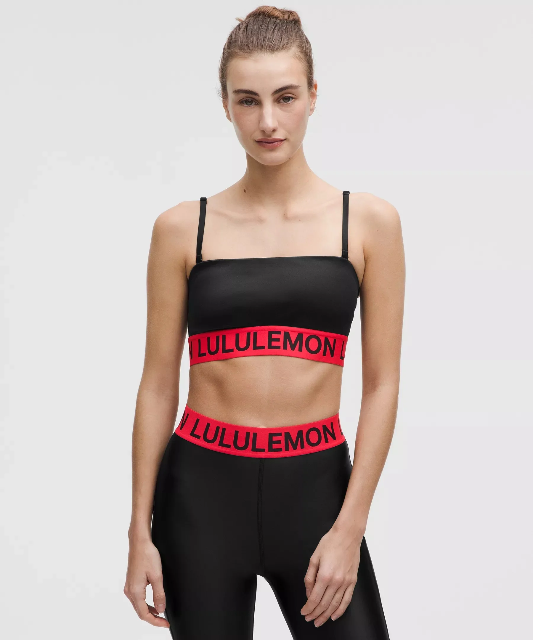 Designed for Training Smooth, Satin Shine Fabric - Smooth with a satin-like shine - Four-way stretch - Sweat-wicking - Quick-drying - Added Lycra® fibre for stretch and shape retention Light Support, A/B Cups - Intended for low-impact activities Product Features - Soft exposed elastic underband is comfortable and feels light on body - Wear the adjustable removable straps straight during your sets. When your workout's done, cross them in the front, or remove one strap for an asymmetrical look. For a tube-top look, remove both straps - Pockets for optional, removable cups Material and care Materials Bra Lining: Face: 83% Recycled Polyester, 17% Elastane - Bra: Face: 68% Polyamide, 32% Lycra Elastane - Trim: 61% Nylon25% Recycled Polyester14% Elastane - Middle Layer: 89% Recycled Nylon11% Elastane Care Machine Wash Cold - Do Not Bleach - Tumble Dry Low - Do Not Iron - Do Not Dry Clean - Wash With Like Colors