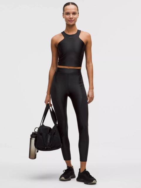 Designed for Running Smooth, Satin Shine Fabric - Smooth - Satin-like shine - Four-way stretch - Sweat-wicking - Quick-drying - Hugged sensation - Added Lycra® fibre for stretch and shape retention - Soft, supportive fabric panels are sweat-wicking and quick drying with a matte finish High Rise, 25" Length - Intended to sit above ankle Product Features - Back drop-in pocket - Discreet side drop-in pockets - Continuous drawcord Material and care Materials Body: 68% Polyamide32% Lycra Elastane - Side Panels: 68% Nylon32% Elastane - Pocket Lining: 90% Polyester (recycled)10% Lycra Elastane - Gusset: 90% Polyester (recycled)10% Lycra Elastane Care Machine Wash Cold - Do Not Bleach - Tumble Dry Low - Do Not Iron - Do Not Dry Clean - Wash With Like Colors
