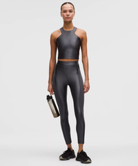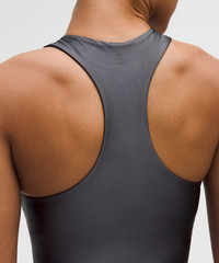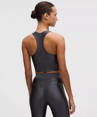 Designed for Running Smooth, Satin Shine Fabric - Smooth - Satin-like shine - Four-way stretch - Sweat-wicking - Quick-drying - Added Lycra® fibre for stretch and shape retention Medium Support, B/C Cups - Intended to provide medium support for B/C cups - Tight fit contours your body - Cropped length is cut above the waist—perfect with high-rise pants - Intended for medium-impact activities Product Features - Built-in shelf bra for added support and coverage - Pockets for optional, removable cups - Racerback shape allows for full range of movement Material and care Materials Inner Layer Lining: 71% Nylon29% Elastane - Side Lining: 100% Nylon - Middle Layer: 90% Polyester (recycled)10% Lycra Elastane - Liner: 90% Polyester (recycled)10% Lycra Elastane - Body: 68% Polyamide32% Lycra Elastane Care Machine Wash Cold - Do Not Bleach - Line Dry - Do Not Iron - Do Not Dry Clean - Turn Garment Inside Out - Wash Separately