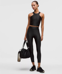 Designed for Running Smooth, Satin Shine Fabric - Smooth - Satin-like shine - Four-way stretch - Sweat-wicking - Quick-drying - Added Lycra® fibre for stretch and shape retention Medium Support, B/C Cups - Intended to provide medium support for B/C cups - Tight fit contours your body - Cropped length is cut above the waist—perfect with high-rise pants - Intended for medium-impact activities Product Features - Built-in shelf bra for added support and coverage - Pockets for optional, removable cups - Racerback shape allows for full range of movement Material and care Materials Middle Layer: 90% Polyester (recycled)10% Lycra Elastane - Liner: 90% Polyester (recycled)10% Lycra Elastane - Inner Layer Lining: 71% Nylon29% Elastane - Body: 68% Polyamide32% Lycra Elastane - Side Lining: 100% Nylon Care Machine Wash Cold - Do Not Bleach - Line Dry - Do Not Iron - Do Not Dry Clean - Turn Garment Inside Out - Wash Separately