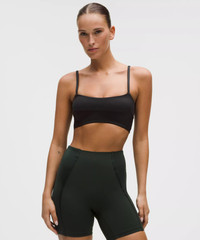 Designed for Yoga Smooth, Satiny Fabric - Smooth with a luxe shine - Four-way stretch - Quick-drying - Lined with an ultra-soft version of our Nulu™ fabric for a luxurious, smooth feel next to skin - Added Lycra® fibre for stretch and shape retention Light Support, A/B Cups - Intended for low-impact activities Product Features - Adjustable straps - Unique front seam lines go overtop of breasts without digging in - Pockets for optional, removable cups Material and care Materials Bra: Face: 77% Nylon, 23% Lycra Elastane - Lining: Face: 65% Polyamide, 35% Lycra Elastane - Middle Layer: 73% Nylon27% Lycra Elastane Care Machine Wash Cold - Do Not Bleach - Tumble Dry Low - Do Not Iron - Do Not Dry Clean - Wash With Like Colors
