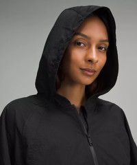Water-Repellent Fabric Relaxed Fit Relaxed fit feels roomy and can be worn over larger layers. Size down if you prefer a slimmer fit Cropped length Product Features Cinchable sleeves and hem Zipper garage keeps chafe in check Kangaroo pocket Material and care Materials Body: 100% Nylon Care Wash with like colours Machine wash cold Do not bleach Tumble dry low Do not iron Do not dry clean Imported