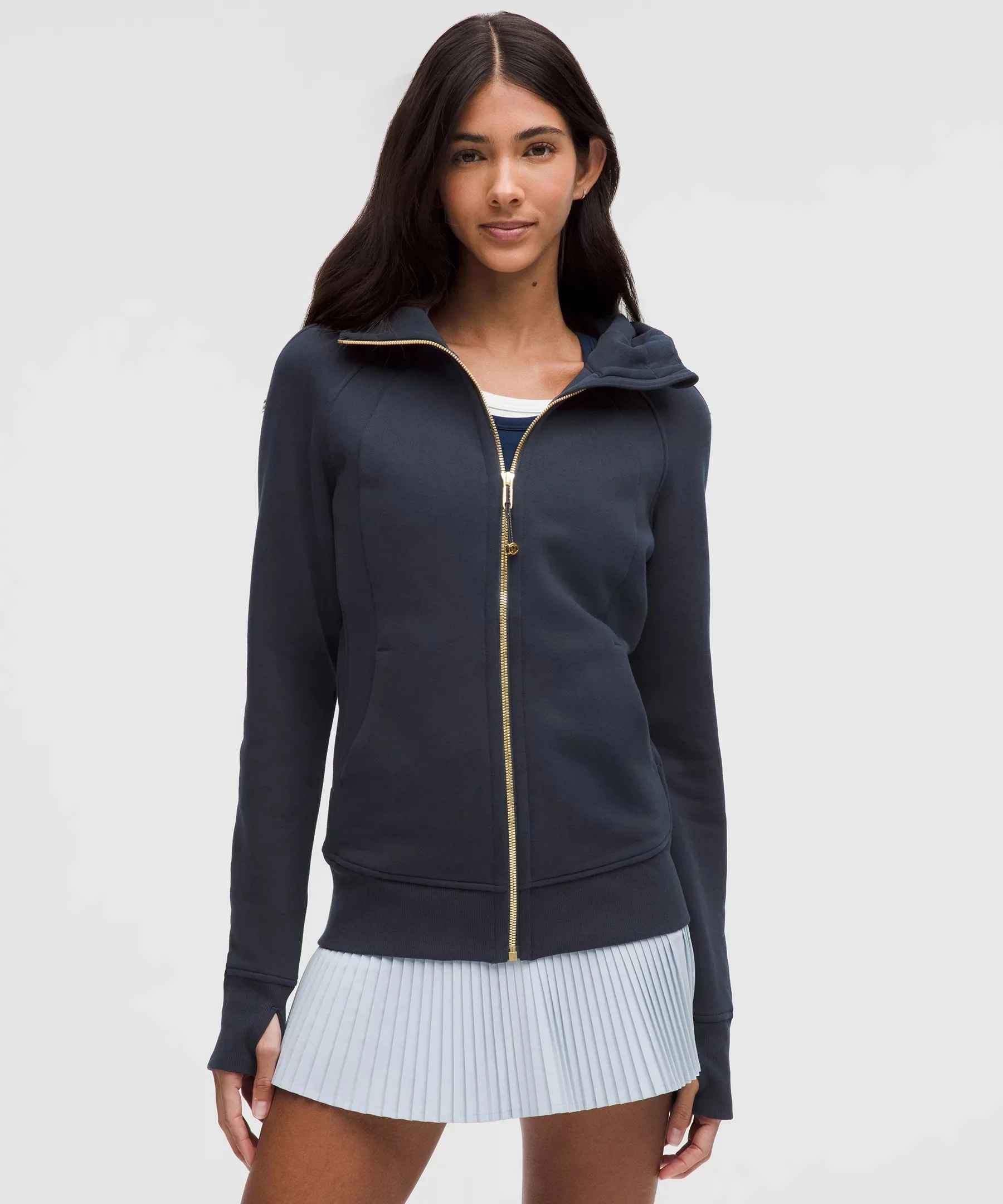 Naturally Breathable, Cotton-Blend Fleece Fabric Naturally breathable Soft against skin Lightweight warmth Classic Fit, Hip Length An easy fit that floats away from your body Sits below the waistband for moderate, everyday coverage Product Features Ribbed panels at the sides and under the arms for added mobility Hand pockets with hidden phone sleeve Thumbholes help keep sleeves down and hands warm Elastic zipper pull doubles as an emergency hair tie Material and care Materials Rib: 97% Cotton3% Elastane Pockets: 95% Cotton5% Elastane Body: 70% Cotton30% Recycled Polyester Care Wash with like colours Machine wash cold Do not bleach Tumble dry low Do not iron Do not dry clean Imported