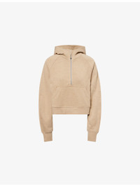 PRODUCT DETAILS - lululemon cotton-blend hoody - 70% cotton, 30% polyester; trims 97% cotton, 3% elastane - Exposed zip fastening at front - Hooded, dropped shoulders, half-zip placket, long sleeves, thumb-holes, gold-toned branded hardware, removable elasticated zip puller, front pouch pocket, hidden phone sleeve, logo embroidered at back of hood, ribbed trims - Machine wash at 30°C - True to size - Model is 5ft 10in/1.78m and wears a size small - Midweight, slight stretch Ref: R04517452