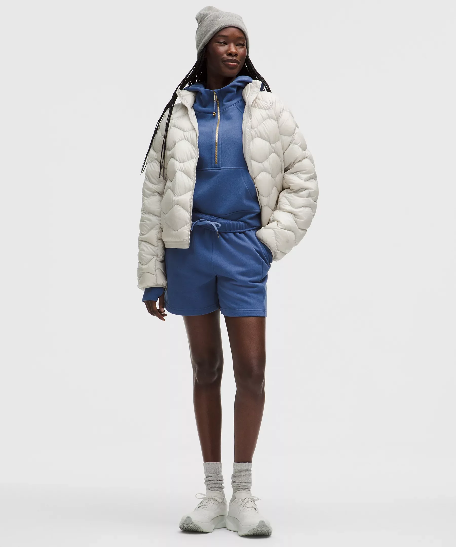 Designed for Casual Naturally Breathable, Cotton-Blend Fleece Fabric - Naturally breathable - Soft against skin - Lightweight warmth High Rise, 5" Length - Classic fit is an easy fit that floats away from your body Product Features - Hand pockets, one with a hidden card sleeve - Roll the waistband down to wear the interior drawcord on the outside Material and care Materials Pockets: 95% Cotton5% Elastane - Body: 70% Cotton30% Recycled Polyester Care Machine Wash Cold - Do Not Bleach - Tumble Dry Low - Do Not Iron - Do Not Dry Clean - Wash With Like Colors