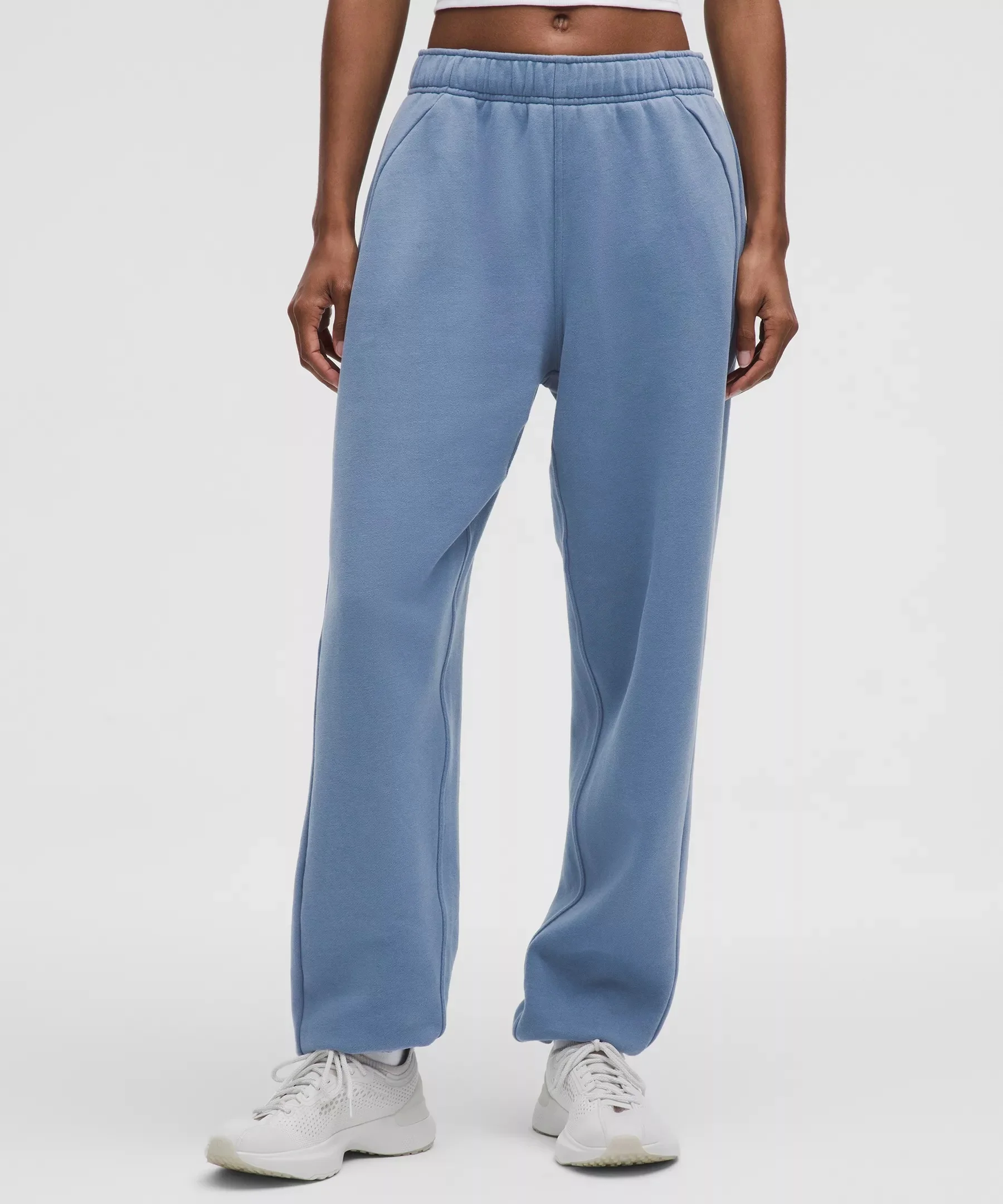 Designed for Casual Naturally Breathable, Cotton-Blend Fleece Fabric - Naturally breathable - Soft against skin - Lightweight warmth Mid Rise, Full Length - Oversized fit is exaggerated and feels extra roomy. Size up for a looser, baggier fit - Intended to sit at ankle for heights of 5'5"-5'8" Product Features - Hand pockets with hidden card sleeve - Cinch the interior drawcord to adjust your fit. Roll the waistband down to wear the drawcord on the outside Material and care Materials Pockets: 95% Cotton5% Elastane - Body: 70% Cotton30% Recycled Polyester Care Wash With Like Colors - Do Not Bleach - Tumble Dry Low - Do Not Iron - Do Not Dry Clean - Wash With Like Colors