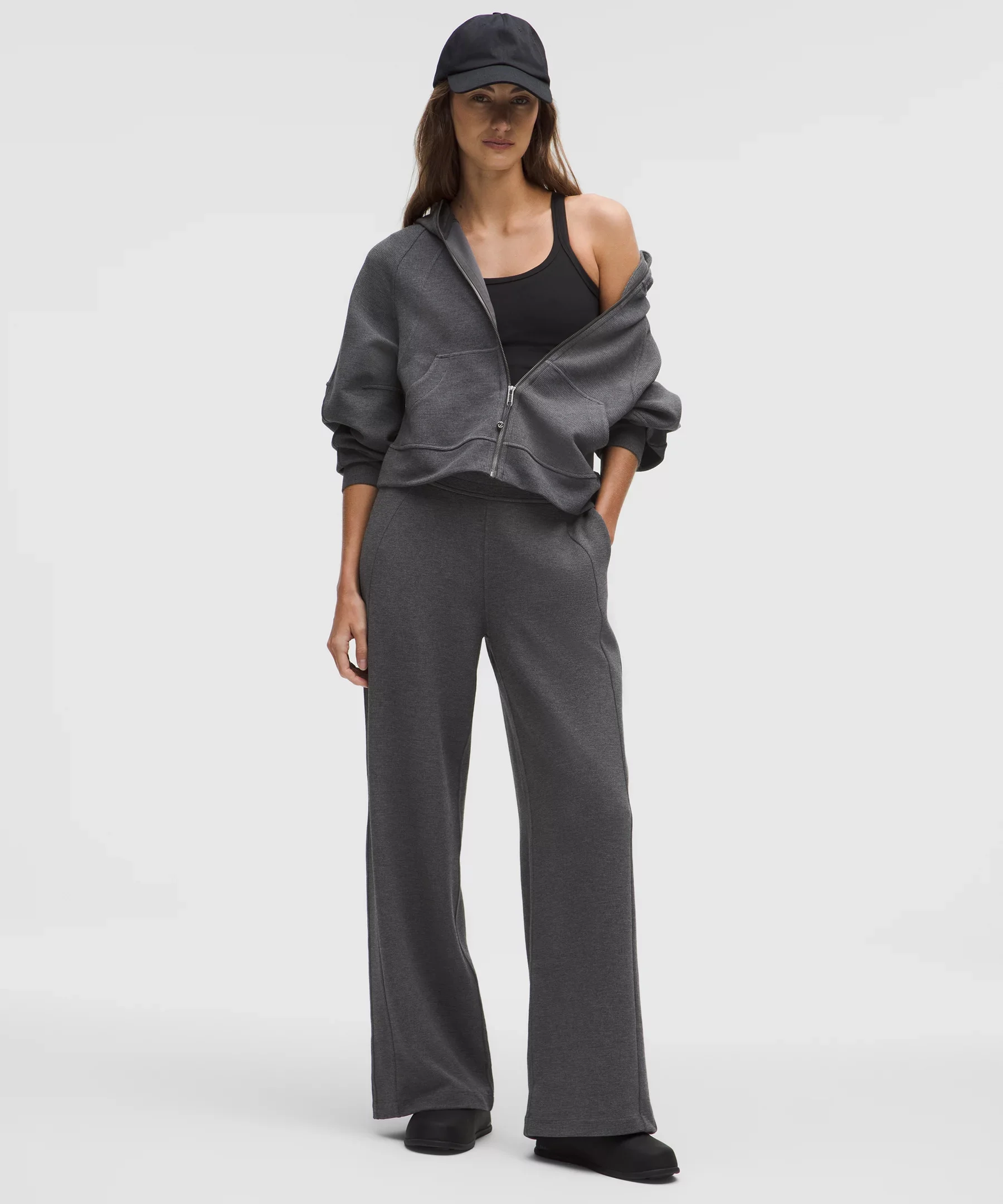 Designed for Casual Cotton-Blend, Waffle-Knit Fabric - Smooth against your skin - Softly textured on the outside Mid Rise, Full Length - Sits away from body, hip to hem Product Features - Hand pockets, one with a hidden card sleeve - Continuous drawcord is easy to cinch and won't get lost in the wash Material and care Materials Body: 41% Cotton27% Modal26% Recycled Polyester6% Elastane Care Machine Wash Cold - Do Not Bleach - Tumble Dry Low - Do Not Iron - Do Not Dry Clean - Wash With Like Colors