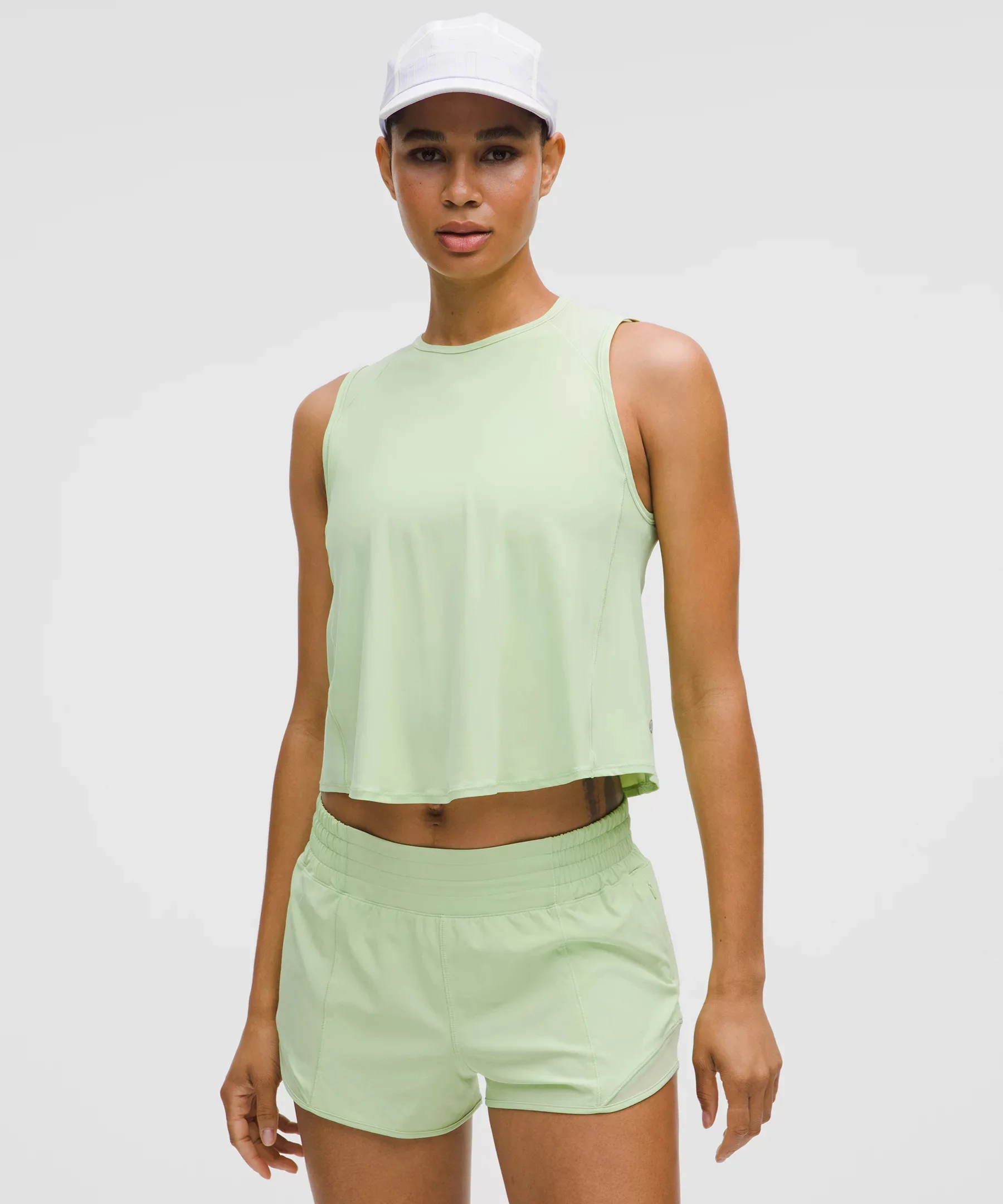 Designed for Running Sweat-Wicking Fabric - Sweat-wicking - Four-way stretch - Quick-drying - Mesh fabric panels for ventilation Classic Fit, Cropped Length - An easy fit that floats away from your body - Cut above the waist—perfect with high-rise pants Material and care Materials Mesh: 64% Nylon36% Elastane - Body: 76% Nylon24% Elastane Care Machine Wash Cold - Do Not Bleach - Tumble Dry Low - Do Not Iron - Do Not Dry Clean - Wash With Like Colors