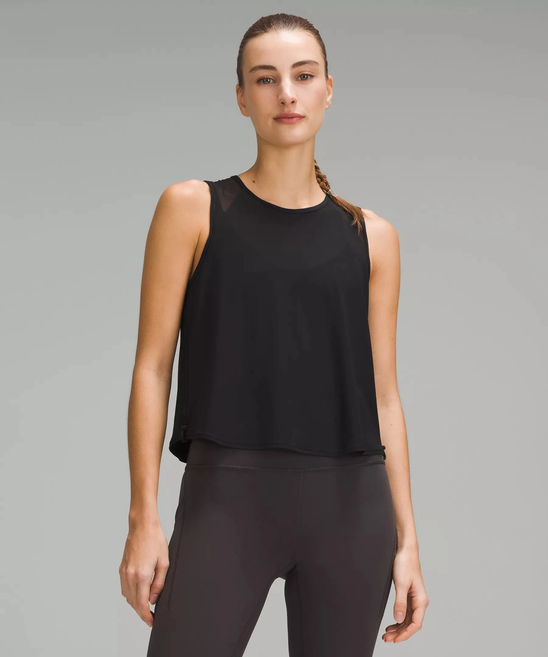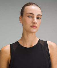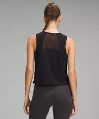 Designed for Running Sweat-Wicking Fabric - Sweat-wicking - Four-way stretch - Quick-drying - Mesh fabric panels for ventilation Classic Fit, Cropped Length - An easy fit that floats away from your body - Cut above the waist—perfect with high-rise pants Product Features - Cinchable side seams let you adjust the length and look Material and care Materials Mesh: 79% Nylon21% Xtra Life Lycra Elastane - Body: 76% Nylon24% Elastane Care Machine Wash Cold - Do Not Bleach - Tumble Dry Low - Do Not Iron - Do Not Dry Clean - Wash With Like Colors