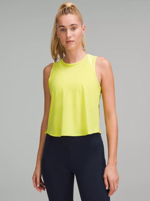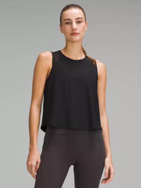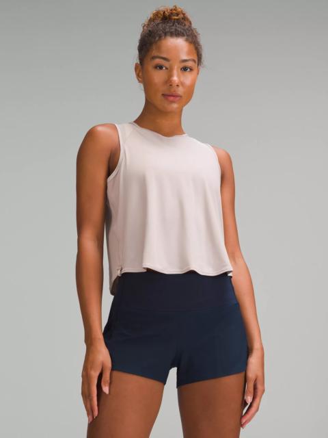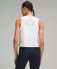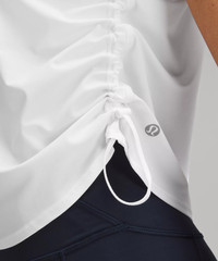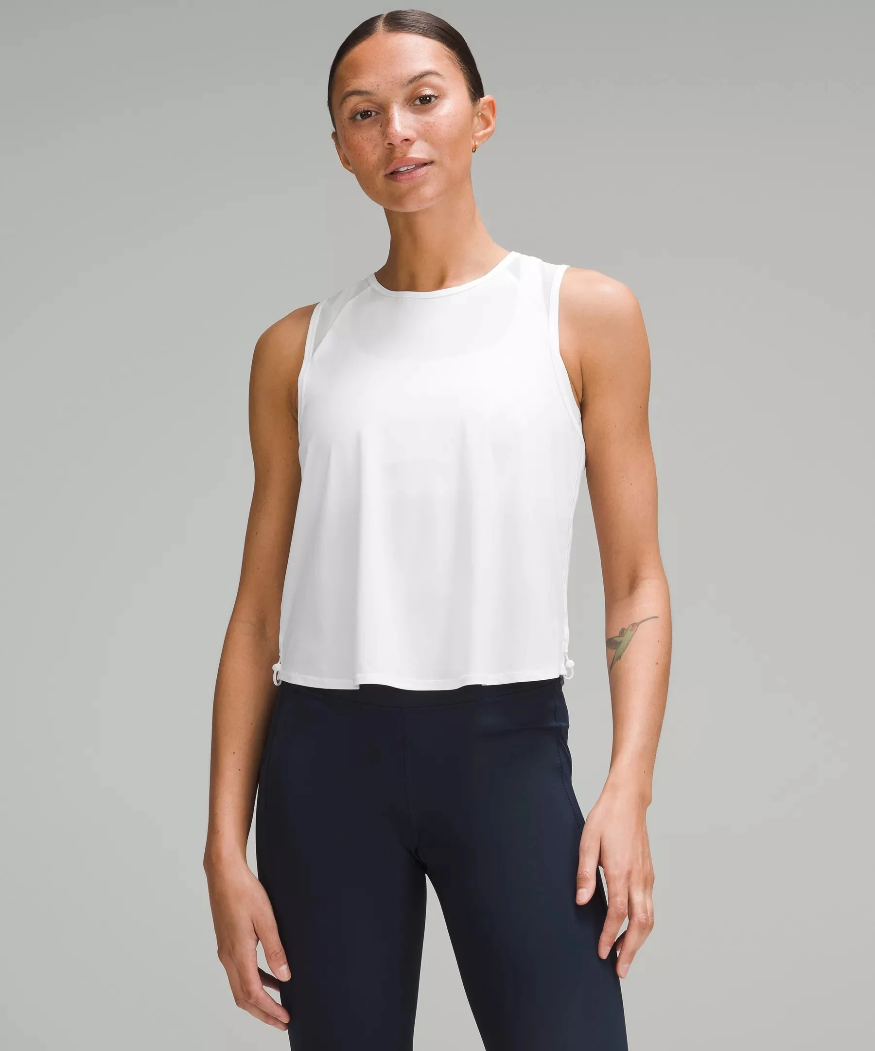 Designed for Running Sweat-Wicking Fabric - Sweat-wicking - Four-way stretch - Quick-drying - Mesh fabric panels for ventilation Classic Fit, Cropped Length - An easy fit that floats away from your body - Cut above the waist—perfect with high-rise pants Product Features - Cinchable side seams let you adjust the length and look Material and care Materials Body: 76% Nylon24% Elastane - Mesh: 79% Nylon21% Xtra Life Lycra Elastane Care Machine Wash Cold - Do Not Bleach - Tumble Dry Low - Do Not Iron - Do Not Dry Clean - Wash With Like Colors