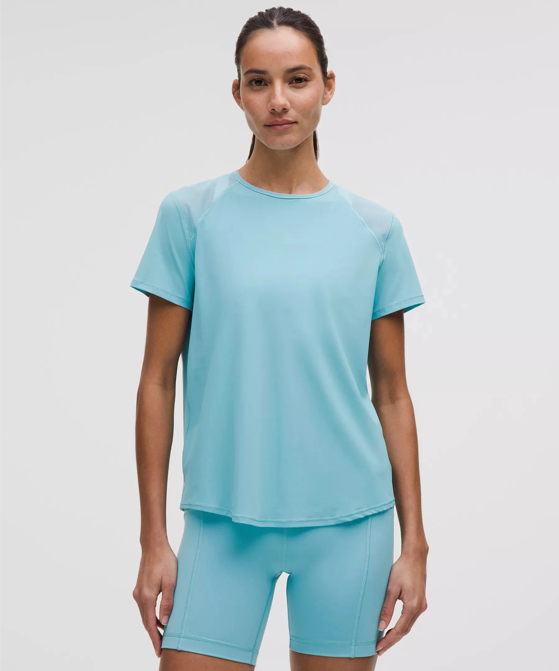 Designed for Running Sweat-Wicking Fabric - Sweat-wicking - Four-way stretch - Quick-drying - Mesh fabric panels for ventilation Classic Fit, Hip Length - An easy fit that floats away from your body - Sits below the waistband for moderate, everyday coverage Material and care Materials Body: 76% Nylon24% Elastane - Mesh: 79% Nylon21% Xtra Life Lycra Elastane Care Machine Wash Cold - Do Not Bleach - Tumble Dry Low - Do Not Iron - Do Not Dry Clean - Wash With Like Colors
