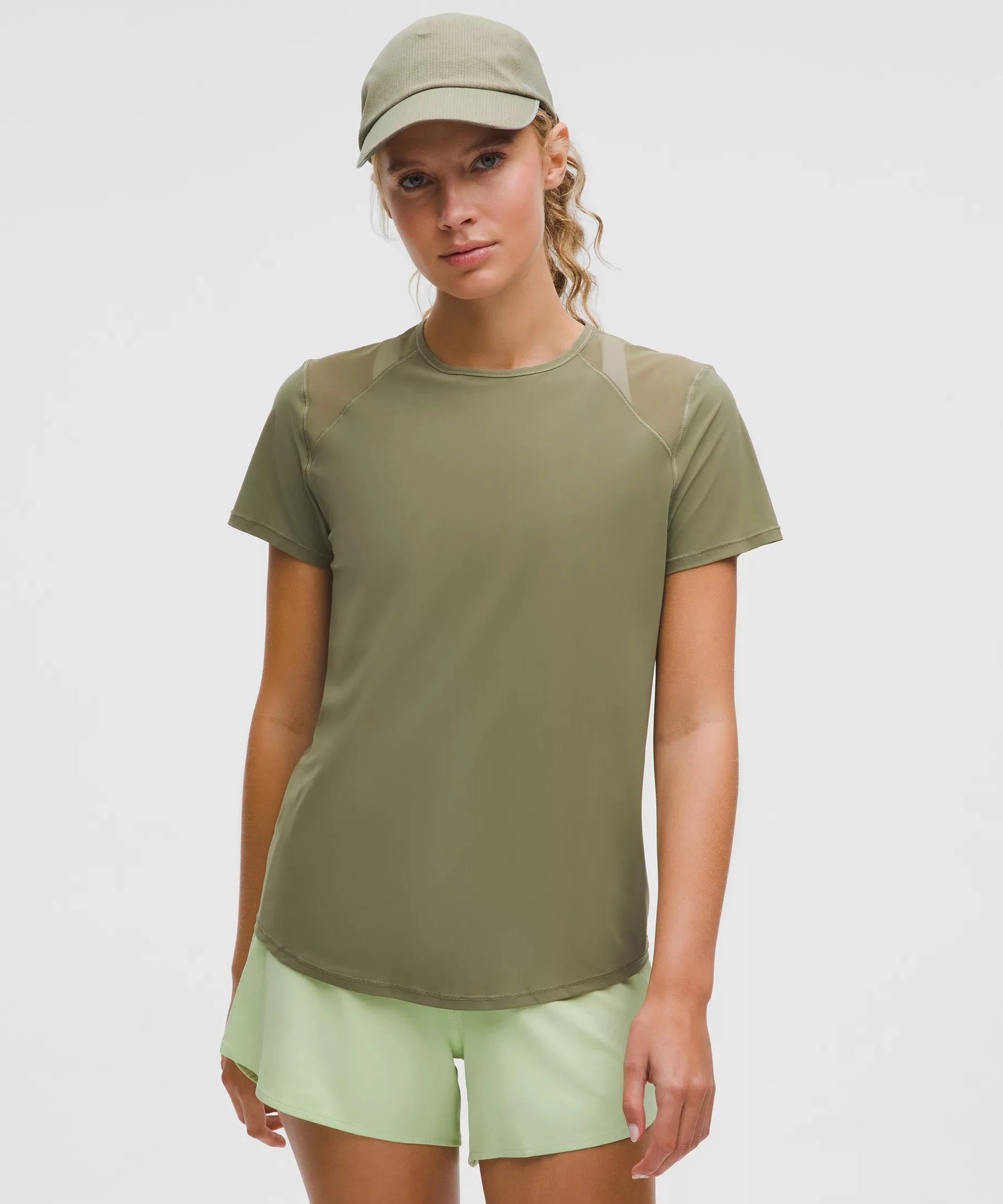 Designed for Running Sweat-Wicking Fabric - Sweat-wicking - Four-way stretch - Quick-drying - Mesh fabric panels for ventilation Classic Fit, Hip Length - An easy fit that floats away from your body - Sits below the waistband for moderate, everyday coverage Material and care Materials Mesh: 79% Nylon21% Xtra Life Lycra Elastane - Body: 76% Nylon24% Elastane Care Machine Wash Cold - Do Not Bleach - Tumble Dry Low - Do Not Iron - Do Not Dry Clean - Wash With Like Colors