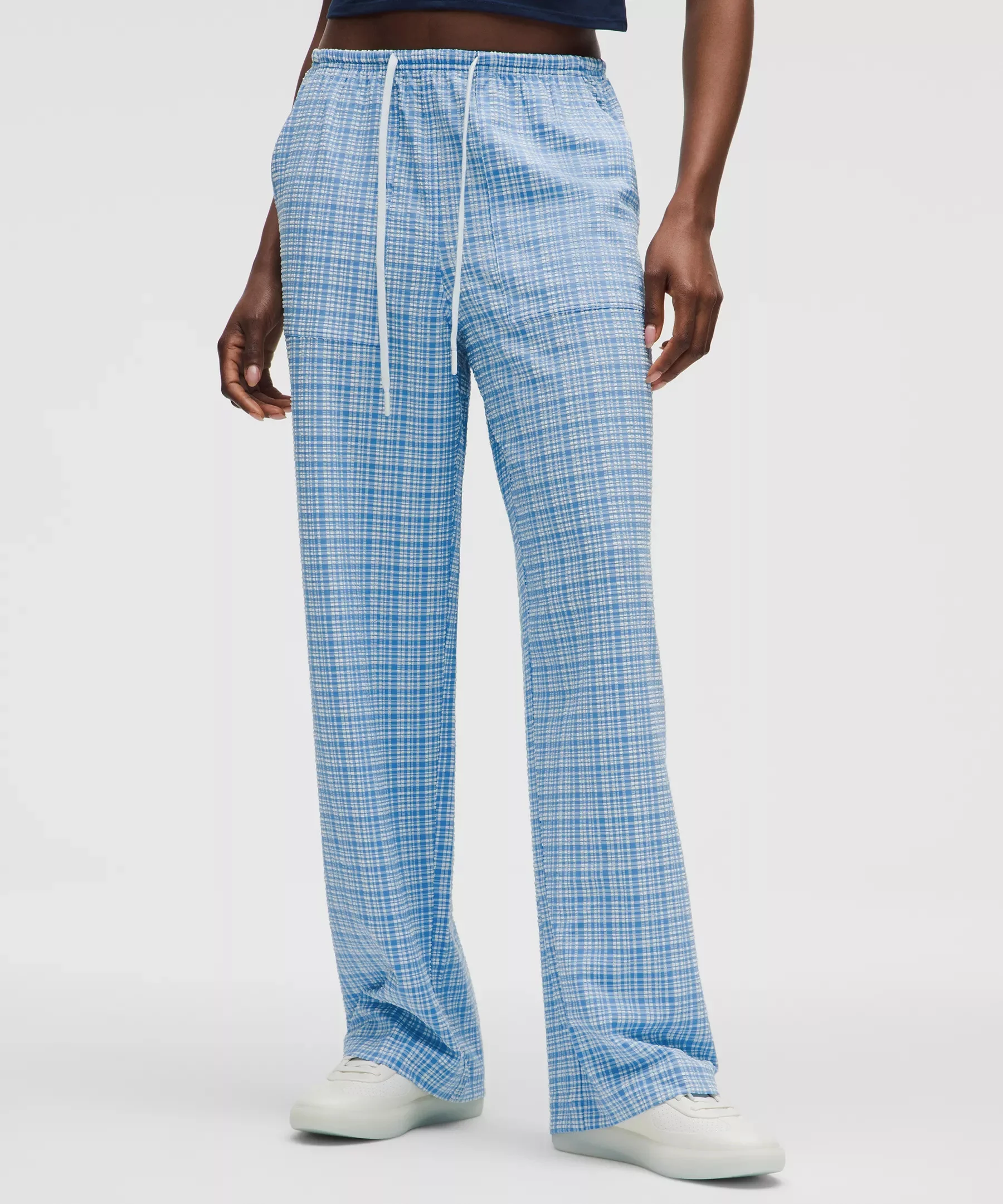 Designed for Casual Soft, Seersucker Fabric - Fabric has a soft, crinkled texture - Sweat-wicking - Quick-drying - 100% of the polyester in this product is recycled (excluding trims) Mid Rise, Full Length - Relaxed fit is roomy through glutes and thighs - Full length intended to sit at ankle Product Features - Hand pockets with hidden card sleeve - Back pocket - Waistband drawcord helps you customize the fit Material and care Materials Body: 49% Recycled Polyester44% Nylon7% Elastane Care Machine Wash Cold - Do Not Bleach - Tumble Dry Low - Do Not Iron - Do Not Dry Clean - Wash With Like Colors