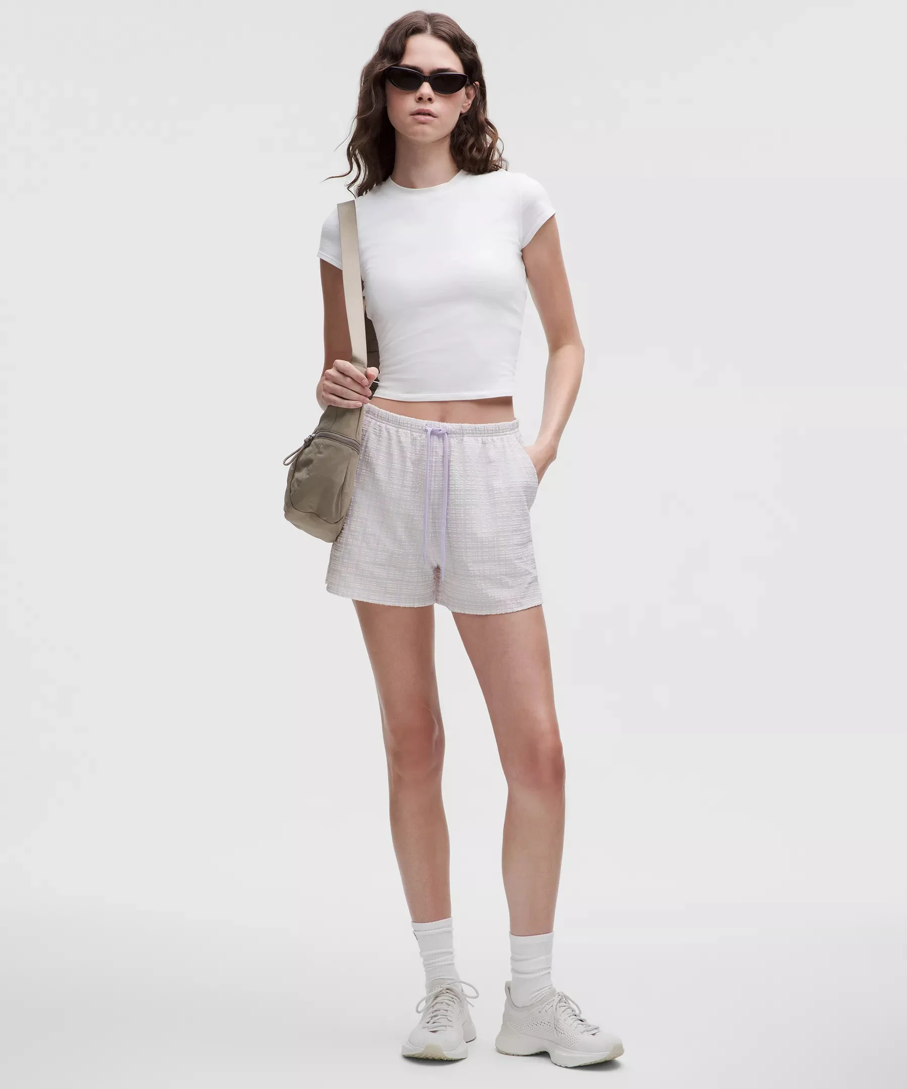 Designed for Casual Soft, Seersucker Fabric - Fabric has a soft, crinkled texture - Sweat-wicking - Quick-drying - 100% of the polyester in this product is recycled (excluding trims) Mid Rise, 3" Length - Classic fit is an easy fit that floats away from your body Product Features - Hand pockets with hidden card sleeve - Back pocket - Waistband drawcord helps you customize the fit Material and care Materials Body: 49% Recycled Polyester44% Nylon7% Elastane Care Machine Wash Cold - Do Not Bleach - Tumble Dry Low - Do Not Iron - Do Not Dry Clean - Wash With Like Colors