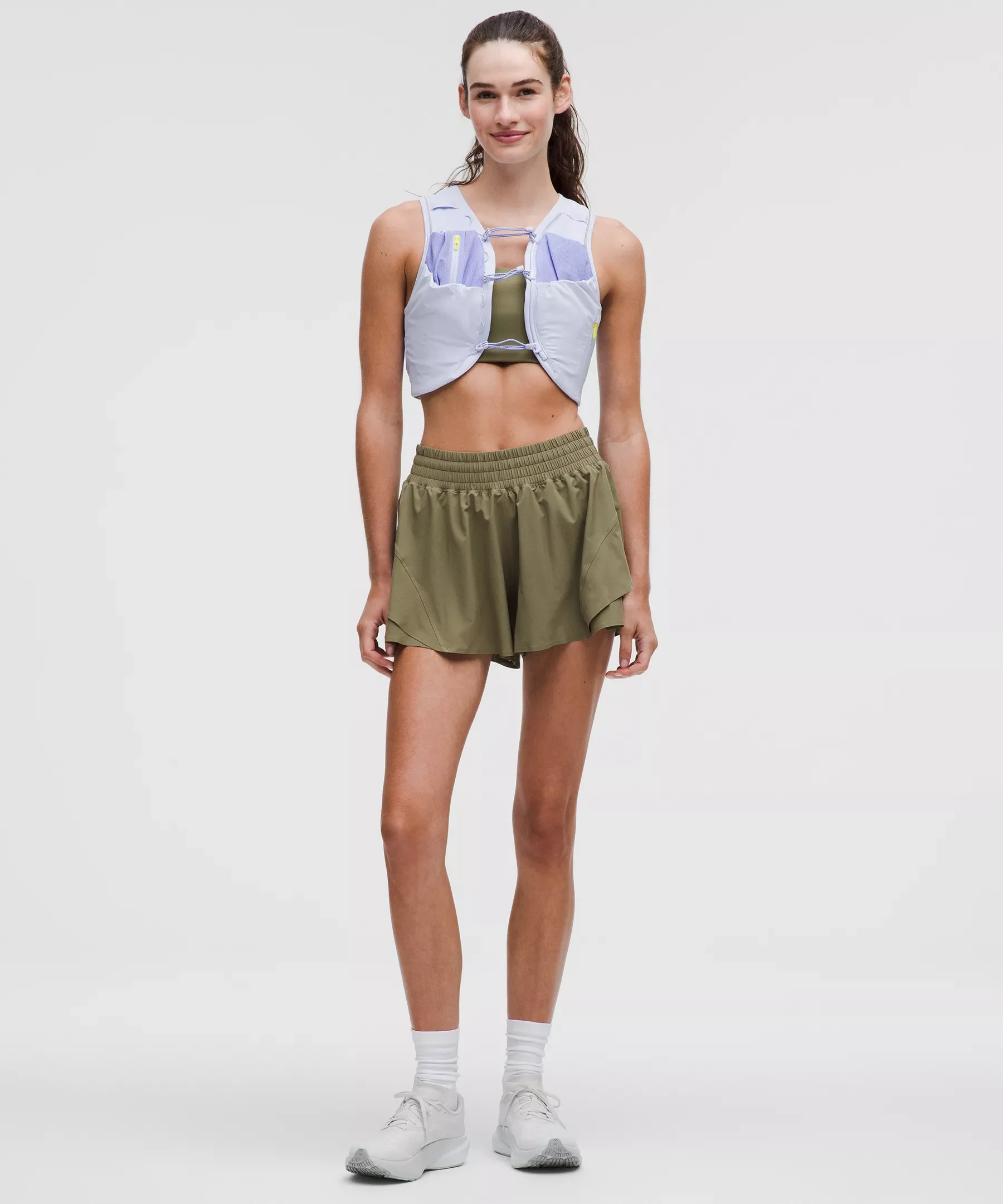 Designed for Running Lightweight, Swift Fabric - Lightweight - Four-way stretch - Sweat-wicking - Quick-drying - Lightweight liner is sweat-wicking and quick-drying with added stretch - 100% of the polyester in this product is recycled (excluding trims) High Rise, 2.5" Length - Relaxed fit is roomy through glutes and thighs Product Features - Built-in liner offers extra coverage - Brief liner has a hidden card pocket - Continuous drawcord Material and care Materials Body: Face: 75% Nylon, 25% Elastane - Gusset: 93% Modal7% Elastane Care Machine Wash Cold - Do Not Bleach - Tumble Dry Low - Do Not Iron - Do Not Dry Clean - Wash With Like Colors