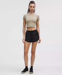 Designed for Running Lightweight, Swift Fabric - Lightweight - Four-way stretch - Sweat-wicking - Quick-drying - Lightweight liner is sweat-wicking and quick-drying with added stretch High Rise, 1.5" Length - Relaxed fit is roomy through glutes and thighs Product Features - Built-in liner offers extra coverage - Brief liner has a hidden card pocket Material and care Materials Liner: 89% Recycled Polyester11% Lycra Elastane - Body: 86% Recycled Polyester14% Elastane Care Machine Wash Cold - Do Not Bleach - Tumble Dry Low - Do Not Iron - Do Not Dry Clean - Wash With Like Colors