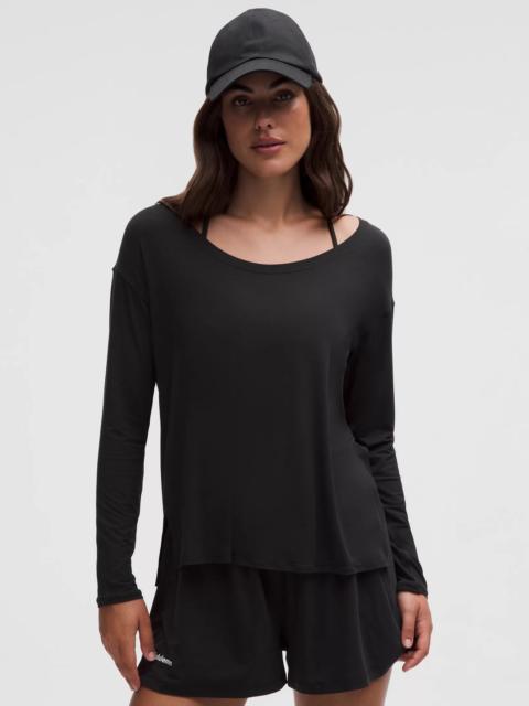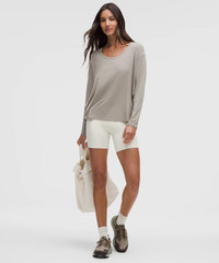 Designed for Yoga and Pilates Soft, Silk-Blend Modal Fabric - Silky-soft - Four-way stretch - Sweat-wicking - Quick-drying - Naturally breathable - Fabric is derived from wood-based materials from well-managed forests Relaxed Fit - A loose fit with a little extra room - Hip length in front, bum-covering length in back Product Features - High side slits - Tie it up for a snug fit at the hip Material and care Materials Body: 86% Lenzing Modal8% Mulberry Silk6% Elastane Care Machine Wash Cold - Do Not Bleach - Tumble Dry Low - Do Not Iron - Do Not Dry Clean - Wash With Like Colors