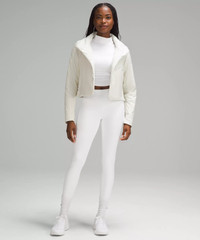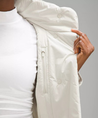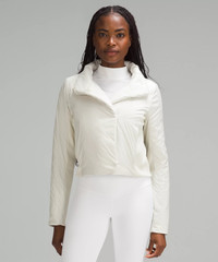 Water-Repellent, SoftMatte™ Fabric Water-repellent Windproof PrimaLoft® insulation is warm, even when wet Panels of four-way stretch fabric in the sleeve and body This product contains recycled polyester made from repurposed plastic waste Base Warmth, Our Lightest Weight Insulation Base warmth features our lightest weight insulation and versatile layering for changing weather and active living Fit and Features Zippered pockets with a hidden phone sleeve Interior pockets hold the essentials Snap closures Classic fit falls away from your body with room for layering Cropped Length Material and care Materials Filling: 100% Recycled polyester Lining: 100% Polyester Rib: 72% Nylon28% Lycra® elastane Body: 100% Recycled polyester Care Wash with like colours Machine wash cold Do not bleach Tumble dry low Do not iron Do not dry clean Imported