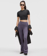 Super-Soft, Sueded Fabric Super soft Four-way stretch Sweat-wicking Quick-drying This product contains recycled polyester made from repurposed plastic waste High Rise, Full Length Hugs your body from waist to knee Subtle flared hems with a back slit 32" inseam, intended to skim the floor for heights of 5'4" to 5'8" Product Features Inspired by the look and feel of our cozy Scuba collection Back drop-in pocket Material and care Materials Pocket: 56% Polyester33% Coolmax Polyester11% Lycra Elastane Body: 88% Recycled Polyester12% Elastane Care Wash with like colours Machine wash cold Do not bleach Tumble dry low Do not iron Do not dry clean Imported