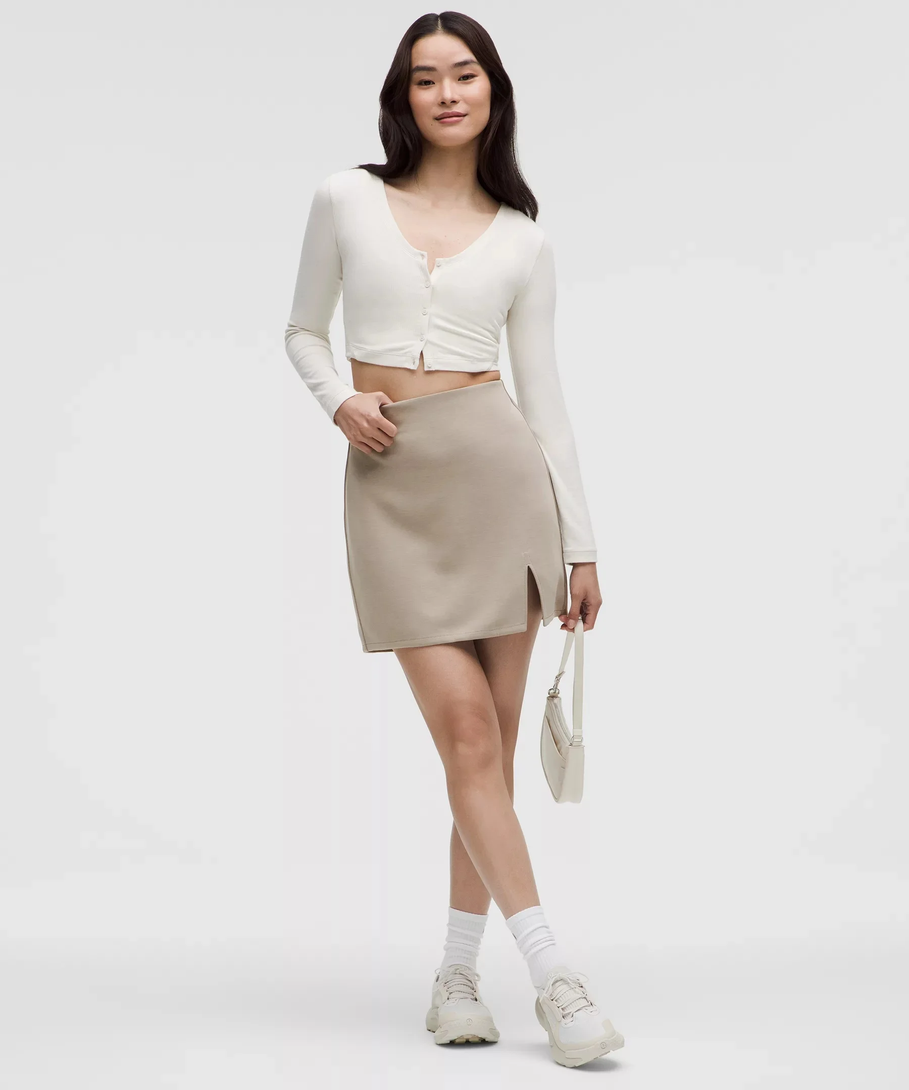 Designed for Casual Peach-Fuzz Soft, Softstreme™ Fabric - Peach-fuzz soft texture - Feels smooth next to skin - Four-way stretch - Weighty drape - Machine washable. Water drops can easily mark this fabric—a simple wash will remove them High Rise, Mini Length - Slim fit skims your body Product Features - Wide, ribbed internal waistband is soft, stays put, and creates a sleek look Material and care Materials Body: 53% Recycled Polyester38% Modal9% Elastane - Under Hem: 100% Cotton Care Machine Wash Cold - Do Not Bleach - Tumble Dry Low - Do Not Iron - Do Not Dry Clean - Turn Garment Inside Out - Wash Separately
