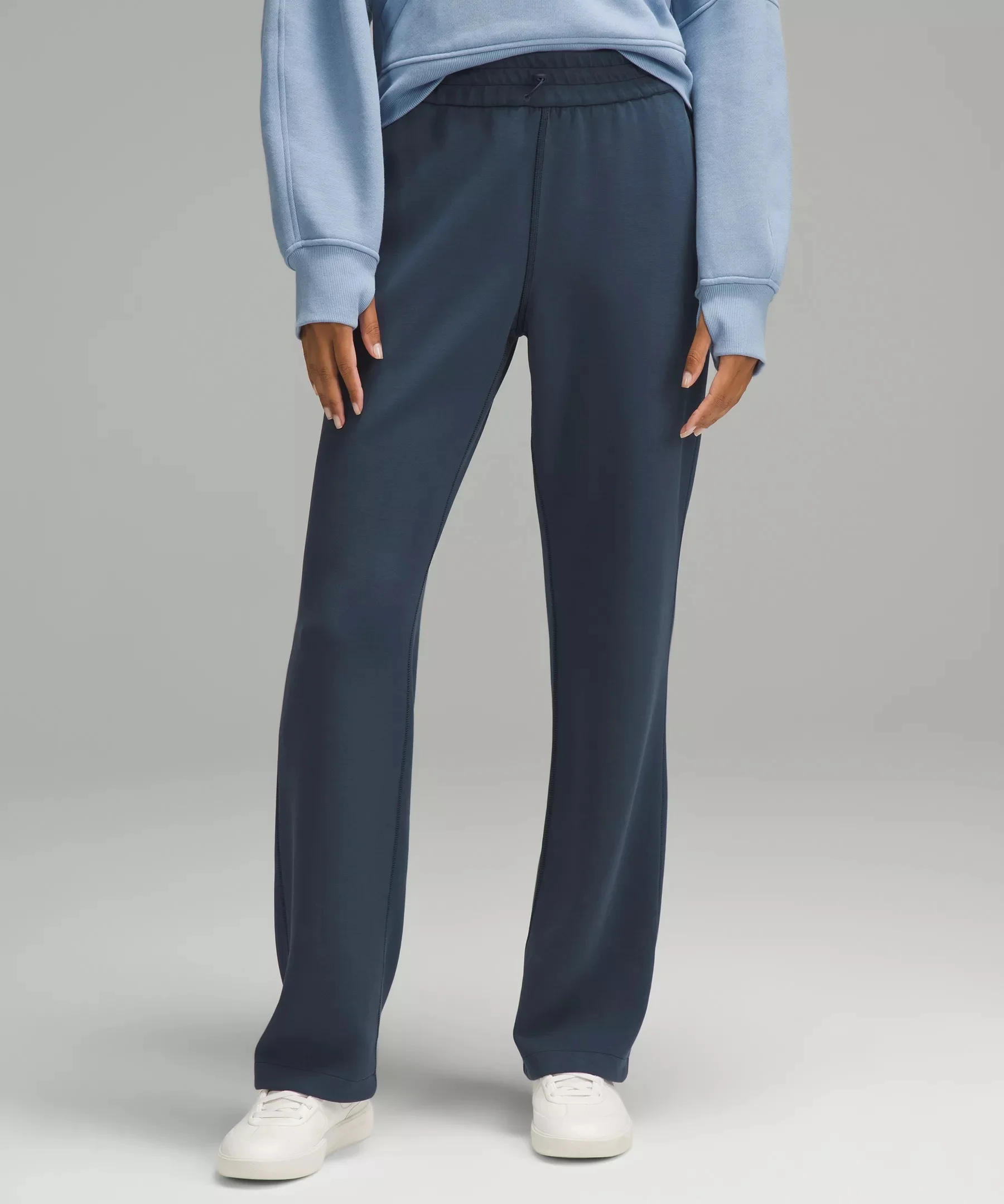 Peach-Fuzz Soft, Softstreme™ Fabric Peach-fuzz soft texture Feels smooth next to skin Four-way stretch Quick-drying Weighty drape Machine washable. Water drops can easily mark this fabric—a simple wash will remove them 100% of the polyester in this product is recycled (excluding trims) Fabric is derived from responsibly sourced wood-based materials that support the protection of ancient and endangered forests High Rise, Full Length An easy fit that floats away from your body Falls straight down from hip to hem 31" inseam, intended to sit below the ankle for heights of 5'5"–5'8" Product Features Shockcord at the waist to customize fit Front pockets with interior card sleeve Material and care Materials Body: 53% Recycled polyester38% Lenzing® modal9% Elastane Care Wash separately Machine wash cold gentle Do not bleach Lay flat to dry Do not iron Do not dry clean Imported